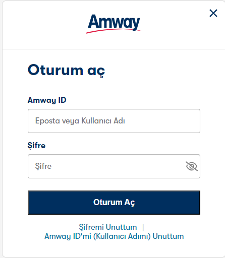 - Açılan pencerede “Amway Kullanıcı Adınız” ve “Şifreniz” ile giriş yapın.
