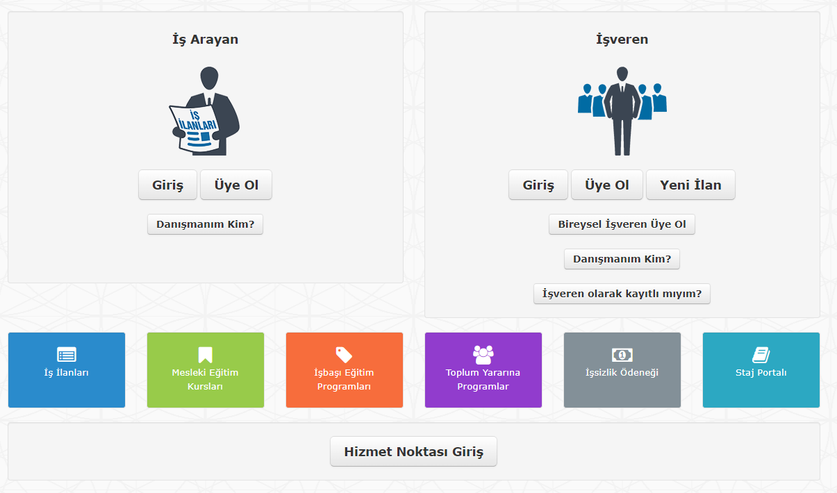 Aşağıdaki adresten Türkiye İş ve İşçi Bulma Kurumu (İŞKUR) resmi web sitesine giriş yapabilirsiniz.