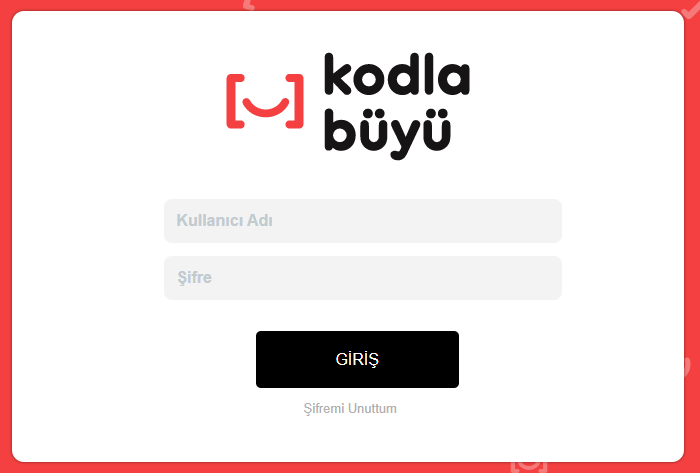 - Giriş yaparken hata mesajı alıyorsanız: Kodla Büyü Destek Ekibi ile iletişime geçin (https://kodlabuyu.kodris.com/)