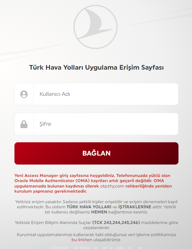 THY tarafından size tahsis edilmiş bir kullanıcı adına ve şifreye sahip olmanız gerekir.